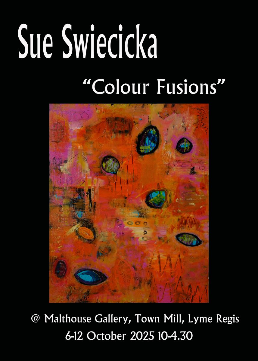 “Colour Fusions” will be at the Malthouse Gallery, Town Mill, Lyme Regis DT7 3PU from Monday 6 October to Sunday 12 October 2025.