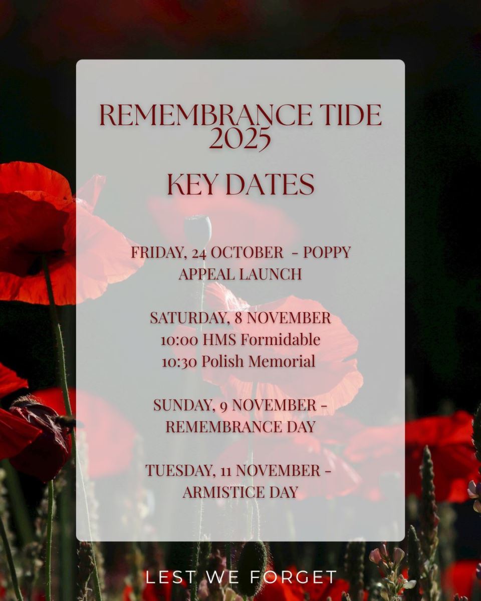 In Lyme Regis, Remembrance begins on Friday 24 August with the launch of the Poppy Appeal.