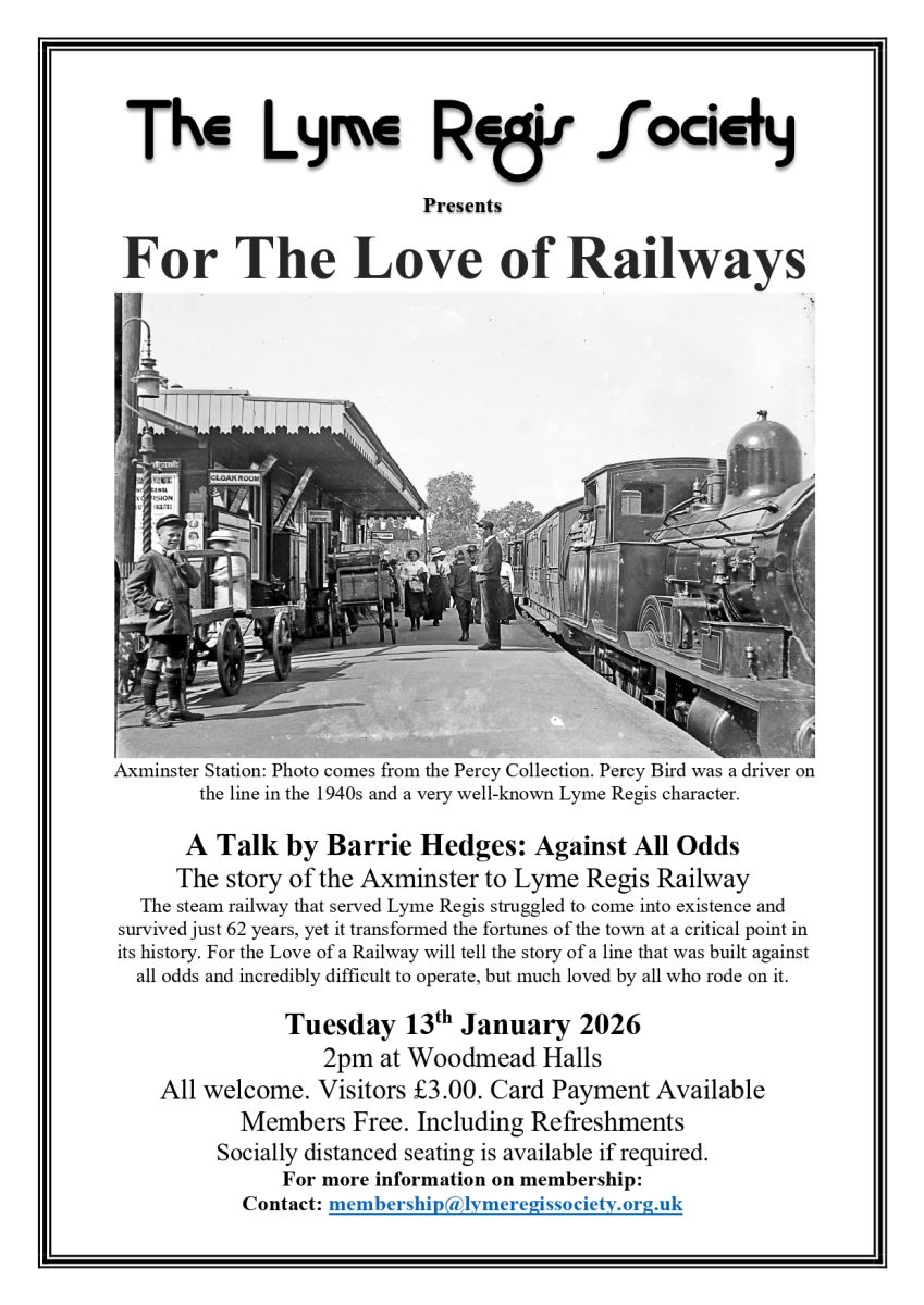Join The Lyme Regis Society for a talk by Barrie Hedges looking at the history of the railway that served Lyme Regis.