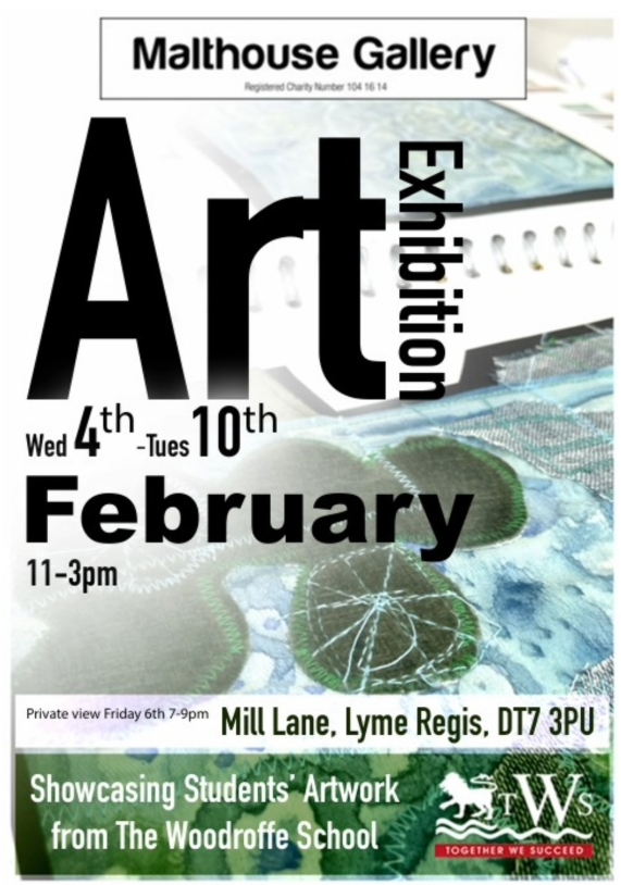 Woodroffe School is once again hosted by the Malthouse Gallery, at the Town Mill for its annual exhibition in Lyme Regis.