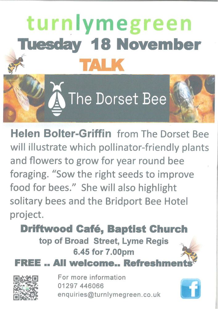 Helen Bolter-Griffin from The Dorset Bee will illustrate which pollinator-friendly plants and flowers to grow for year round bee foraging.