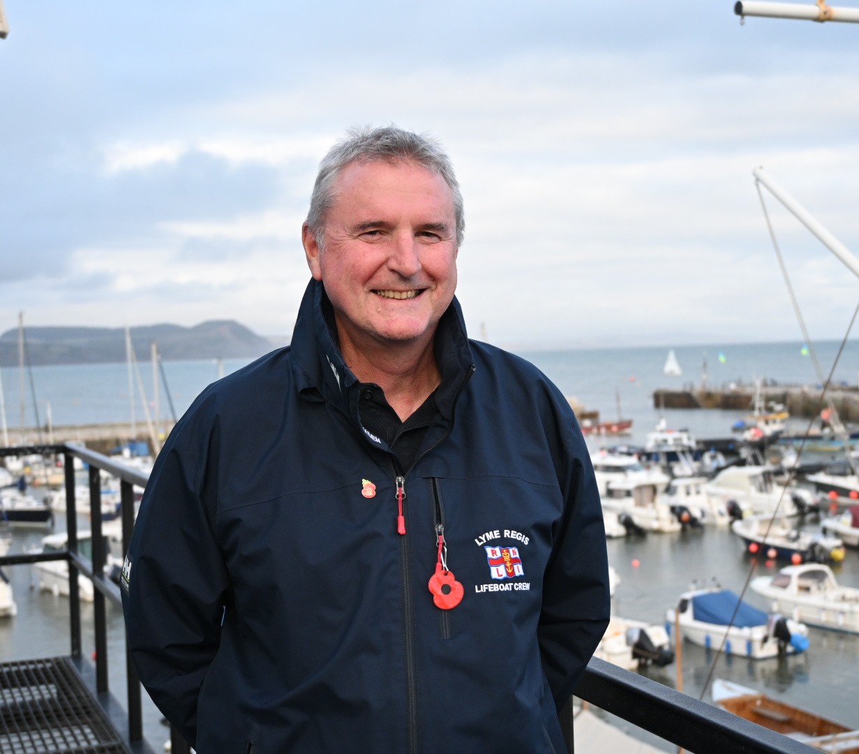 Photo 1: Tony Thompkins joins Lyme Regis as a Launching Authority. Credit: RNLI/Nick Marks